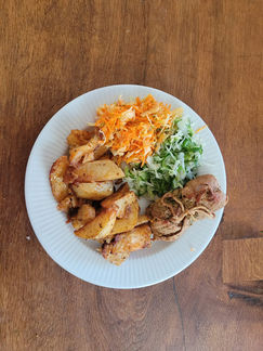 3.10.25r.- skrzydełka miodowe z ziemniakami i zestawem surówek